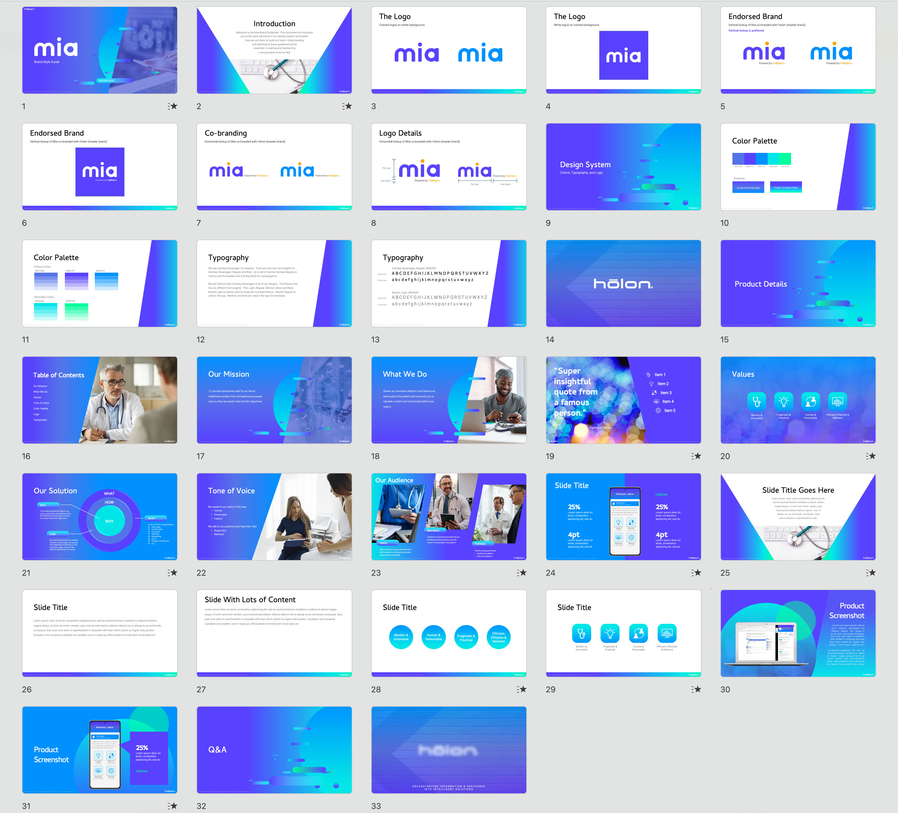Brand development (including logo, brand guidelines, and presentation template) for a health tech startup.