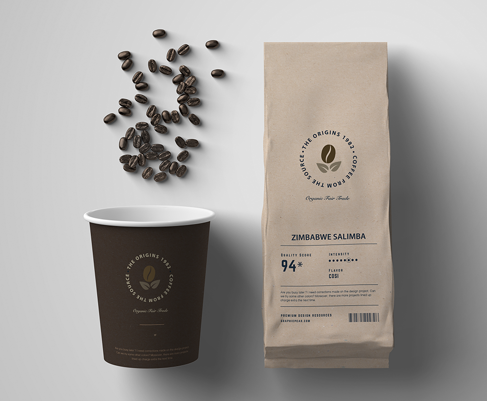 Logo and packaging design for a coffee brand.