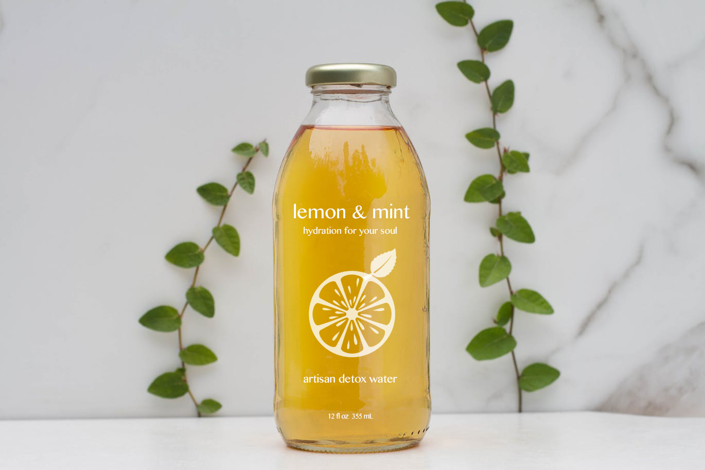 Logo and packaging design for Lemon & Mint artisan detox water.