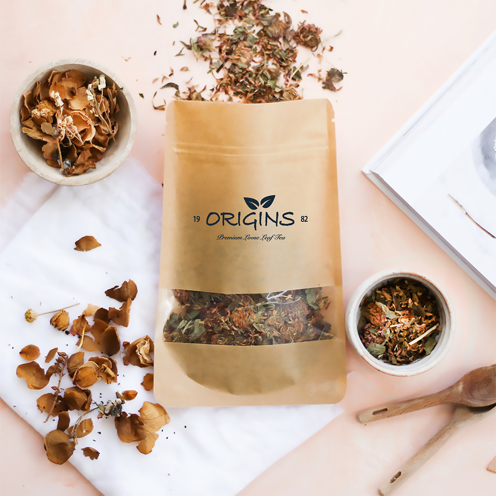 Logo and packaging design for a tea brand.